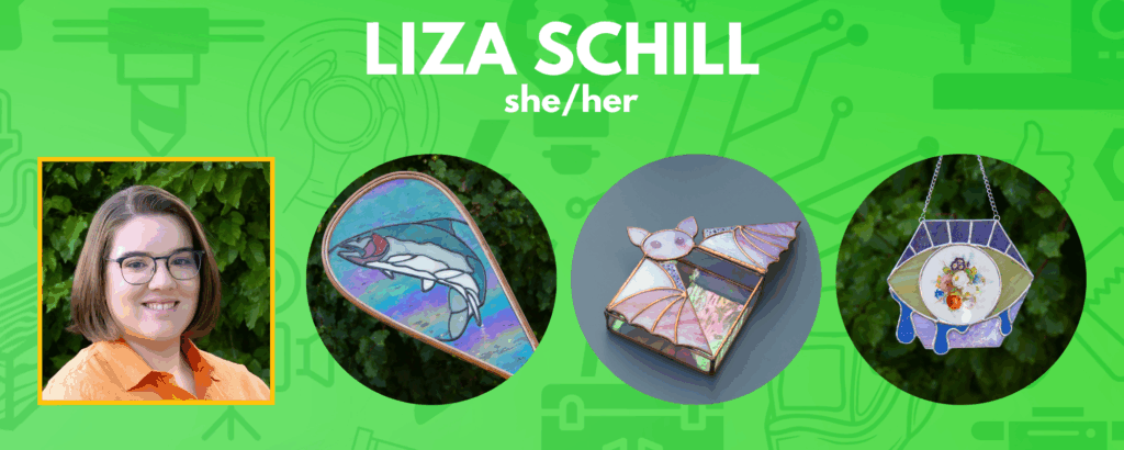 “I am one of the Captains of the Stained Glass Shop, and an enthusiastic member. I first visited TinkerMill years ago for a community event. I thought it was a very cool space, but between grad school and a full-time job, I knew I didn’t have the time or funds to commit to becoming a member. But I’ve always been a maker and love trying new things. Once I graduated and got a stable job, I really wanted to try my hand at stained glass. I fell in love immediately and never left! I’ve been slowly trying to make my way through trying more and more shops and I still have so much left to learn. “